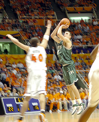 Andrew Freeman battles for a rebound with Calvin Brock...